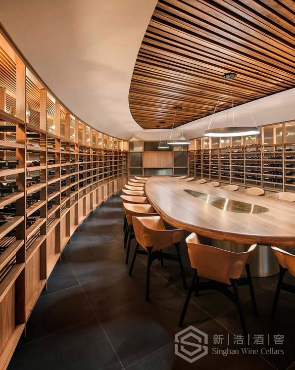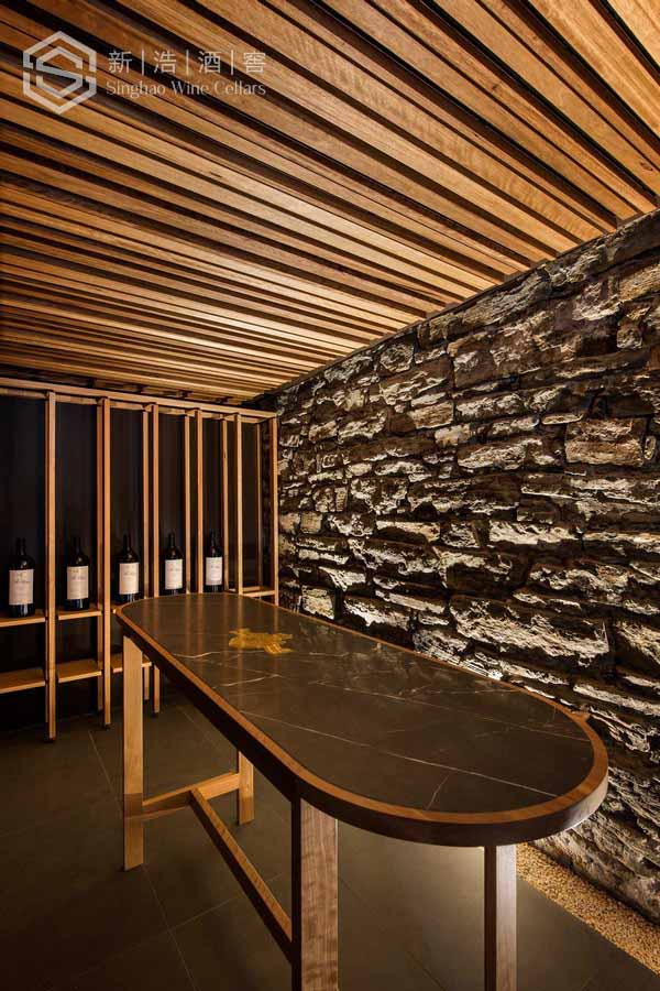 在庭院里,用户可以进入地窖防空区,那里设有一个活动酒吧。 酒窖还拥有现场最独特的空间 - 瓶房 - 可以说是最大的实木桌子坐落在一些精美细致的细木工坊内,这些细木工房屋是圣胡戈的私人收藏品。这间客房专供那些属于高级俱乐部的客人使用,该俱乐部还设有桶式保险箱,那里的用户可以将自己的葡萄酒桶装在古老的石墙中。 楼上是品酒室和餐厅的主人,拥有完全不同的体验。餐厅有一个精致的黄铜,blackbutt和pietra grigia 大理石细木工调色板。这些材料带有任何装饰条纹,并用于增强黑色大教堂天花板,原始石墙和昏暗的灯光空间所设置的氛围。品酒室充满自然光线,以完全不同的方式阅读相同的材料调色板。用户被吸引到当地景观的全景,他们的感官是由葡萄酒的气味和味道驱动的。